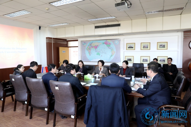 本网讯 11月20日,泰国格乐大学代表团在副董事长素帕教授带领下访问公司,公司党委常委、副董事长刘国华会见代表团,国际合作与交流处、太阳集团tcy8722负责人参加会谈。