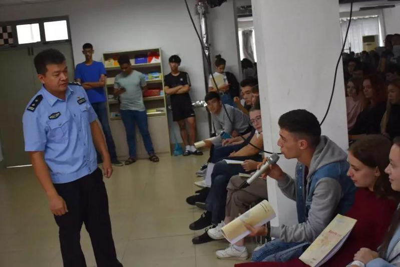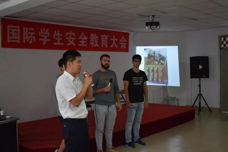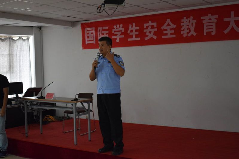 9月12日,太阳集团tcy8722在2号职工公寓二楼活动室举办国际员工安全教育大会。公司员工工作办公室全体老师及本学期新入学的全体国际员工参加了大会。公司邀请张店区学区派出所所长张健警官为新入学国际员工讲解安全知识。