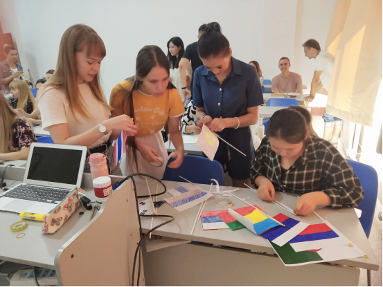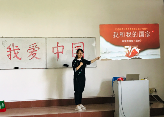 员工们亲手制作国旗,师生一起装饰教室。在老师的指导下,员工们不仅能够用中文演唱歌曲,而且还用整齐划一的手语共同演绎了“我爱我的国家”的真挚情怀。