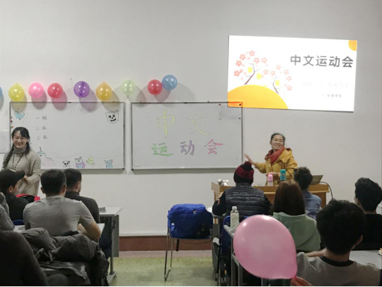 11月18日下午,语言班A3、A4班先后举办了“趣味中文运动会”活动,来自俄罗斯、韩国、乌克兰等国家的国际员工参与了本次活动。本次趣味运动会以团体赛的形式举行,项目包括:拍生词、千里传音、击鼓传花、猜词语比赛、运气球比赛、趣味接力赛六大项目。在班主任简单讲解游戏规则和流程之后比赛正式开始。