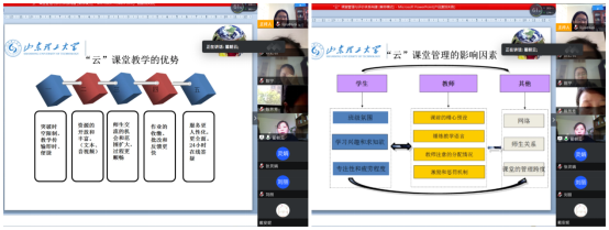 最后与会教师们还针对线上教学的日常考勤、课程进度、师生沟通、员工学习习惯培养、分课型考试形式和方法等诸多问题开展了广泛而热烈的探讨和交流。