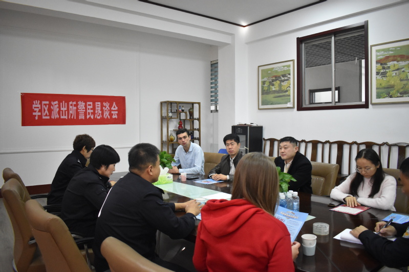 座谈会上,高静介绍了新研发的外国人临时住宿登记软件的使用以及外国职工日常管理等方面工作,并诚恳征求师生的意见、建议。张健从外国人管理、维护社区安全稳定等方面介绍了学区派出所采取的工作措施和取得的成效,对太阳集团tcy8722在外国人管理等方面给予的支持和协助表示感谢。民警发放了警惕电信诈骗、远离非法集资的宣传材料。