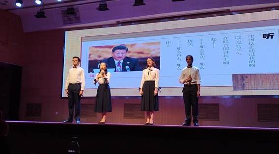 决赛现场,伴着制作精美的音乐和背景画面,18级商务汉语班托龙、刘沙,19级商务汉语班马坚,19级国际物流班玛丽亚四位同学或温柔缠绵,或沧桑沉郁,或轻快明朗,或慷慨激扬,精彩演绎了中华语言文化的独特魅力,表达了对中国语言文字和中华文明的热爱和赞美,赢得了现场的热烈掌声,获得了评委的高度评价。