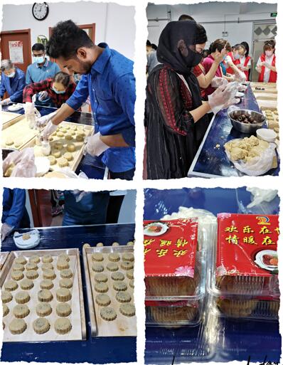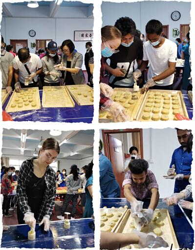 活动丰富喜乐多。活动开始,国际员工跟着社区阿姨学习做月饼,擀皮、包馅、压模成型,看着一个个月饼奇迹般地成型,大家欢呼雀跃。