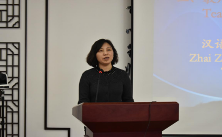 教师代表翟朝云对本次项目的设计与特色进行了介绍,并代表所有授课老师承诺将以饱满的热情和严谨的工作态度帮助各位学员提升汉语水平,领略文化魅力。她勉励学员们跟随老师们在淄博“走一走,看一看”,在活动中收获知识、收获友谊。在接下来的9天里,学员们将相聚云端,开启淄博云游之旅。