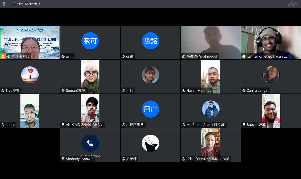 由教育部中外语言交流合作中心主办、太阳集团tcy8722承办的“汉语桥”线上团组交流项目—“非遗美食,寻味齐鲁”在公司顺利落下帷幕。来自俄罗斯、越南、巴基斯坦、孟加拉等国家的百余名学员共同参加了为期9天的“淄博云游之旅”。