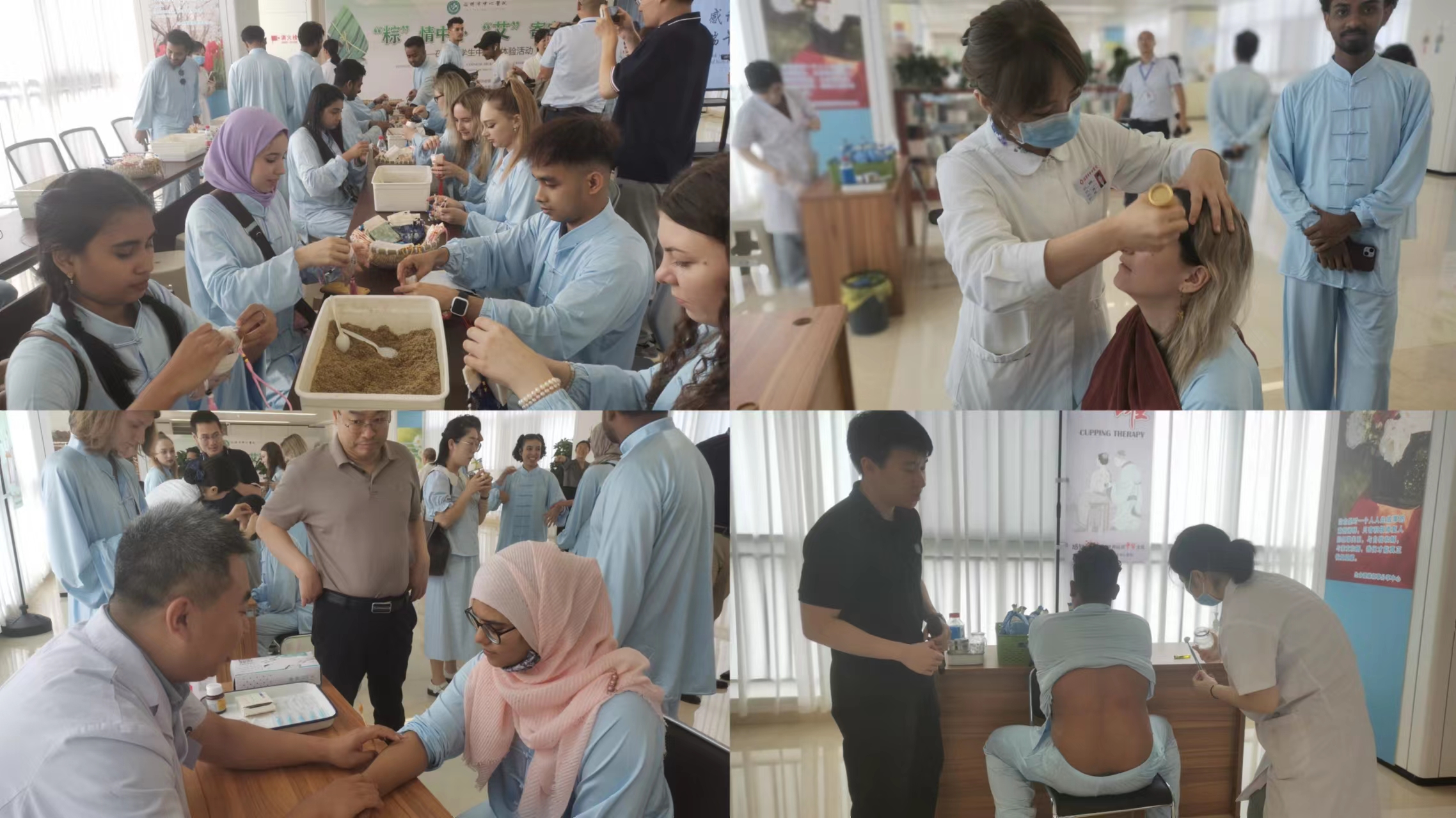 2023年6月20日,端午节来临之际,公司组织来自孟加拉、俄罗斯、巴基斯坦、埃及等十余国20名国际员工代表赴淄博市中心医院开展中医药文化体验活动,淄博市外办、淄博市卫健委、太阳集团tcy8722、淄博职业公司国际公司、淄博市中心医院等部门领导班子成员出席本次活动并发表讲话。