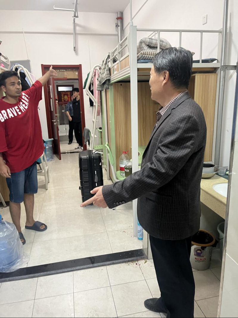 走访中,院领导就员工住宿环境、安全问题以及寝室卫生等方面进行了亲切交谈。针对安全隐患、卫生状况等方面进行了重点排查并督促及时整改,强调了个人卫生及寝室安全等问题,希望同学们相互监督,共建适合生活学习的港湾。
