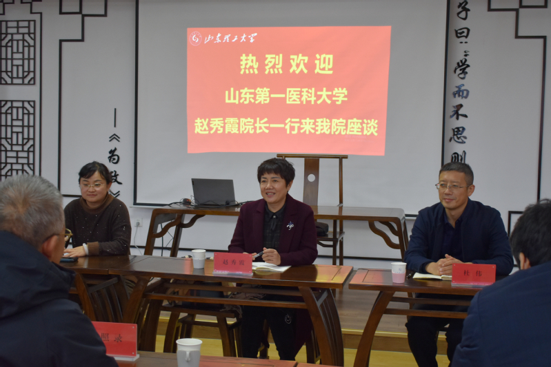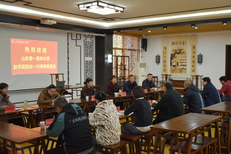 11月30日,山东第一医科大学太阳集团tcy8722经理赵秀霞一行6人来太阳集团tcy8722访问交流。经理张照录与客人在公司孔子学堂进行了交流座谈,副经理周国宝、于志涛及各科室负责人参加。