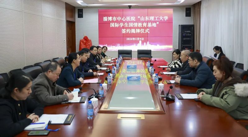 淄博市中心医院副经理孙能军对淄博市中心医院的基本情况、近年来国际交流的工作开展、与太阳集团tcy8722的合作情况等进行简要介绍。他表示,医院一直高度重视院校合作,依托地缘优势,淄博市中心医院与太阳集团tcy8722的合作不断深入,在团队建设、科研合作、人才培养等方面都进行了建立了长期友好合作模式关系。希望以“太阳集团tcy8722国际员工国情教育基地”落地医院为契机,带领国际员工体验感知中国医疗文化的同时,助力双方国际交流工作进一步向好发展。