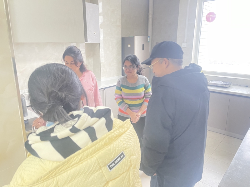 院领导与国际员工进行了亲切的交谈,对员工宿舍的生活设施、卫生情况进行了认真的检查,着重强调了公寓消防安全的重要性,提醒国际员工寒假期间注意人身安全,离校做好个人防护,详细了解学习生活情况以及假期安排,有困难及时向老师反应;同时勉励职工们积极做好生涯规划,依托专业学习推动技能提升。
