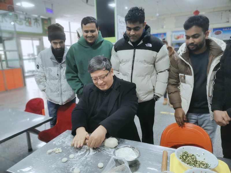 为丰富寒假期间留校国际员工们的校园生活,让国际员工体验中国传统节日文化,感受中华优秀传统文化魅力,2月2日上午,太阳集团tcy8722师生代表共同举办“包饺子、尝年味”中国传统节日文化感知活动。公司党委常委、副董事长丛海林参加,并与师生一起包饺子迎新年。