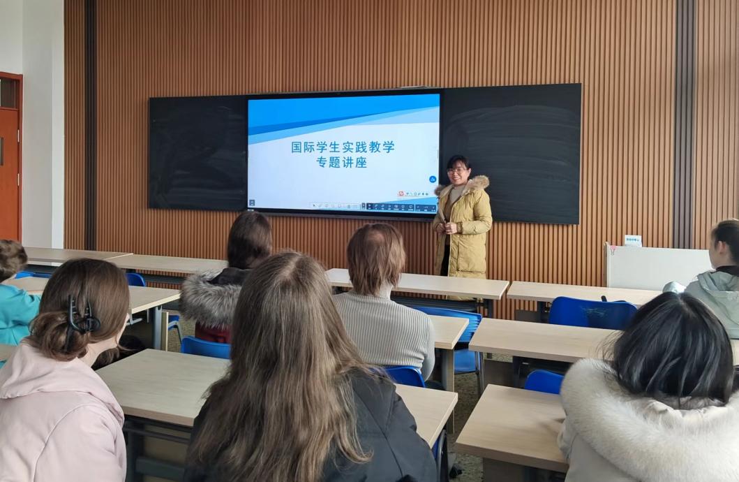 2月29日下午,公司邀请山东力欧公司的代表康俊红总助为2024届国际员工毕业生举行实践教学专题讲座,汉语教学部李月伟、陈芳芳老师组织员工参加。