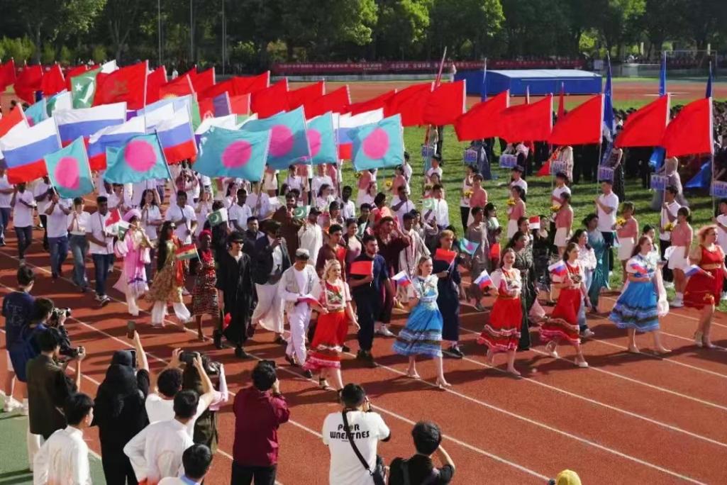 4月25日早上,一场力量与速度体育盛宴渐渐拉开帷幕。开幕式上,各公司员工及教职工组成的方队各具特色,各显神通。公司国际员工运动员代表队在这场运动会中展现出了独有的国际文化特色。来自33个国家的90余名中外师生组成的运动员代表队,他们身着本国传统服饰,手持各国国旗,成为了 运动会场上一道别样的风景。