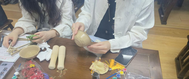 活动伊始,SICA精心安排了中草药香囊制作环节。中草药香囊是中国传统文化的瑰宝,它不仅具有驱虫避邪的实用功能,更承载着深厚的文化内涵。活动现场,活动负责人介绍了香囊的历史渊源、制作工艺,国际学生们纷纷动手制作属于自己的香囊。他们将艾草、藿香、薄荷等中草药装入精美的布袋中,再用彩线精心缝制,一个个香气四溢的香囊逐渐成形。