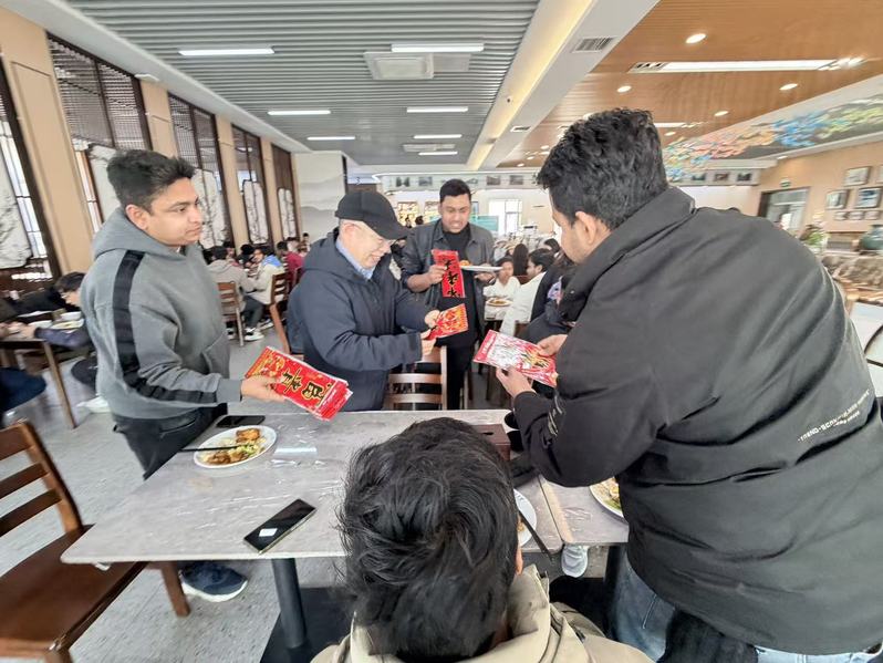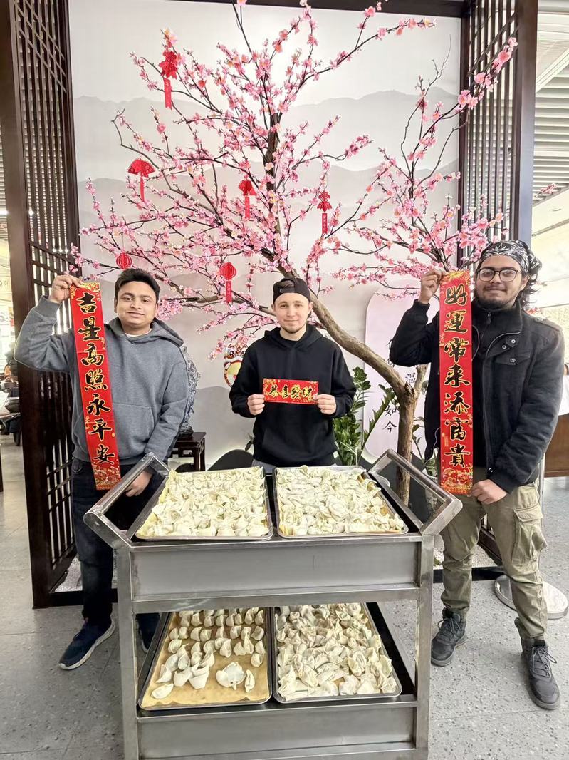为弘扬中华优秀传统文化,让在校国际员工沉浸式体验中国春节的喜庆氛围,2月12日在梅园餐厅举办包水饺迎新春活动,来自俄罗斯、孟加拉国、哈萨克斯坦、阿富汗等十几个国家的国际员工齐聚一堂,在欢声笑语中学习包水饺,共迎马年新春。